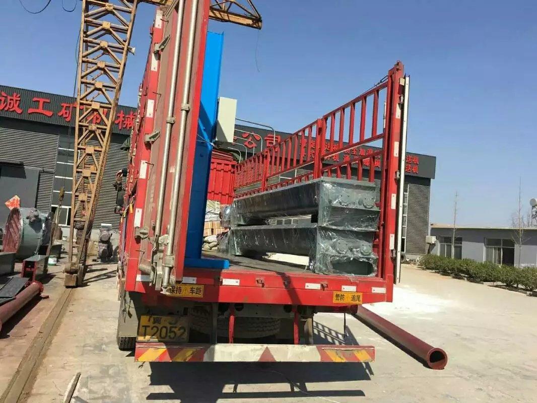 將機(jī)器落下,焊接給料口和排料口,安裝密封套,固定好兩端蓋板。
